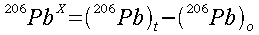 A new variable with the superscript X is defined to denote the radiogenic lead formed since the rock solidified, 206PbX